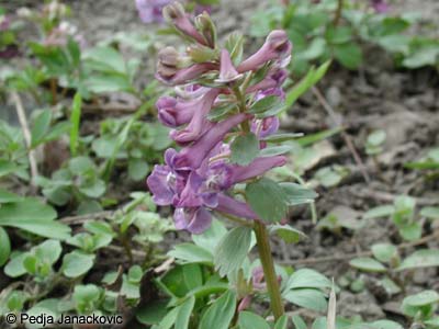 Višegodišnja biljka visine 8-20 (30)cm, krtole loptaste, kompaktne, riđastomrke. Stabljika sočna zelena ili crnvenomrka uspravna. Na stabljici dva lista, listovi na drškama, duplo tročlani, goli, sivozeleni, sa obrnutim jajastim liskama. Priperci ispod listova pri osnovi stabla,ljuspasti. Grozdasta cvast, jednostavna, cvetovi ljubičastocrveni, retko beli ili žućkasti. Plod čaura, jajasto lancetasta, skoro iste dužine kao peteljka, sa nagore savijenim stubićem za vreme cvetanja. III-IV.