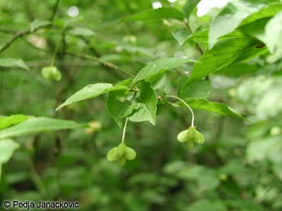 Obično žbun do 3 m ili nisko drvo, visoko do 6m, staro do preko 50 godina, sa površinskim korenom. Mlade grančice sivozelenkaste, starije sive do crnkaste. Pupoljci kupasto-jajasti. Lišće izduženo-jajasto ili izduženo-eliptično. Cvasti račvice sa 3-7 cvetova u pazuhu. Plod čaura, duboko 4-dela, beskrilna, žućkasta ili crvenkasta; zrela avgusta-septembra. IV-V.